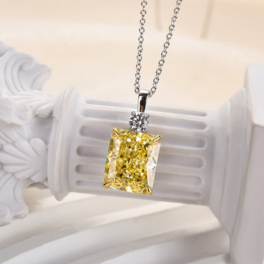 Elegant Yellow Sapphire Radiant Cut Pendant Necklace In Sterling Silver