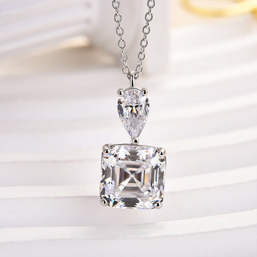 Louily Stunning Asscher Cut White Sapphire Necklace In Sterling Silver