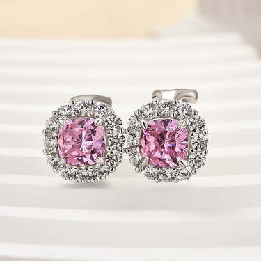 Louily Lovely Pink Stone Cushion Cut Women's Stud Earrings