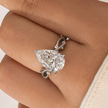 4.0Ct Pear Cut Twisted Willow Ring White Gold Moissanite Diamond Ring