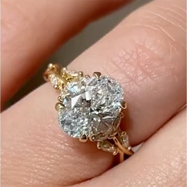 This vintage 3.0Ct oval cut Moissanite engagement ring features dazzling side stones set along a gracefully twisted sterling silver band. The oval center stone shines brilliantly, while the twist design adds a modern, elegant flair to the vintage-inspired style.