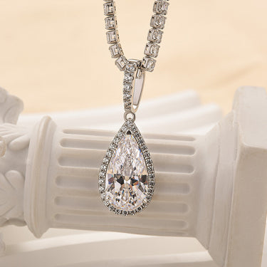 Louily Sparkle Halo Pear Cut Women's Tennis Chain Necklace In Sterling Silver