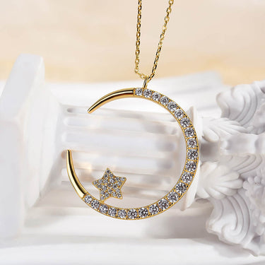 Louily Yellow Gold Moon Design Round Cut Star Design Necklace In Sterling Silver