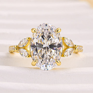 Louily Sparkle Five Stone Yellow Gold Oval Cut Engagement Ring In Sterling Silver