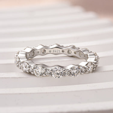 Louily Lovely Moissanite Round Cut Women's Wedding Band In Sterling Silver