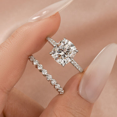 Moissanite 3.0 Ct Cushion Cut White Gold Bridal Ring Set