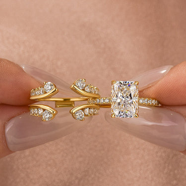 Moissanite 3.5Ct Radiant Cut Yellow Gold Wedding Ring with Enhancer Ring