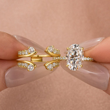 Moissanite 4.0Ct Oval Cut Yellow Gold Wedding Ring with Enhancer Ring